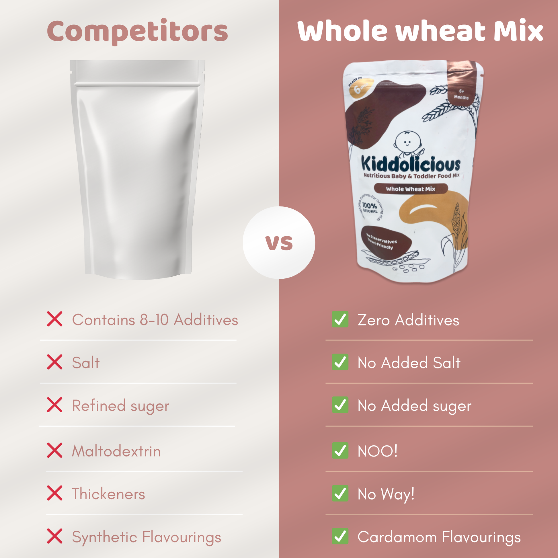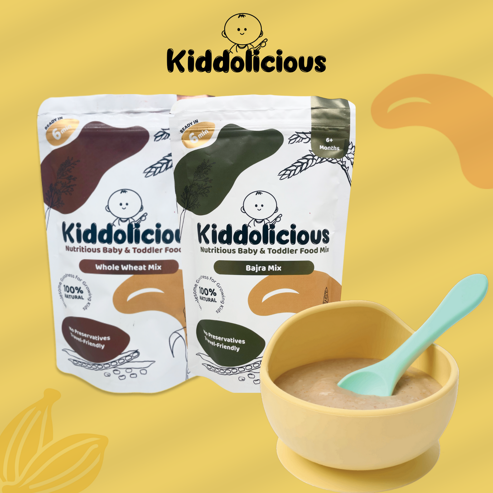 Together, the Whole Wheat and Bajra Mixes offer a well-rounded blend of nutrients to help your baby thrive. Make mealtime simple, nutritious, and delicious with Kiddolicious! 🍲💚👶