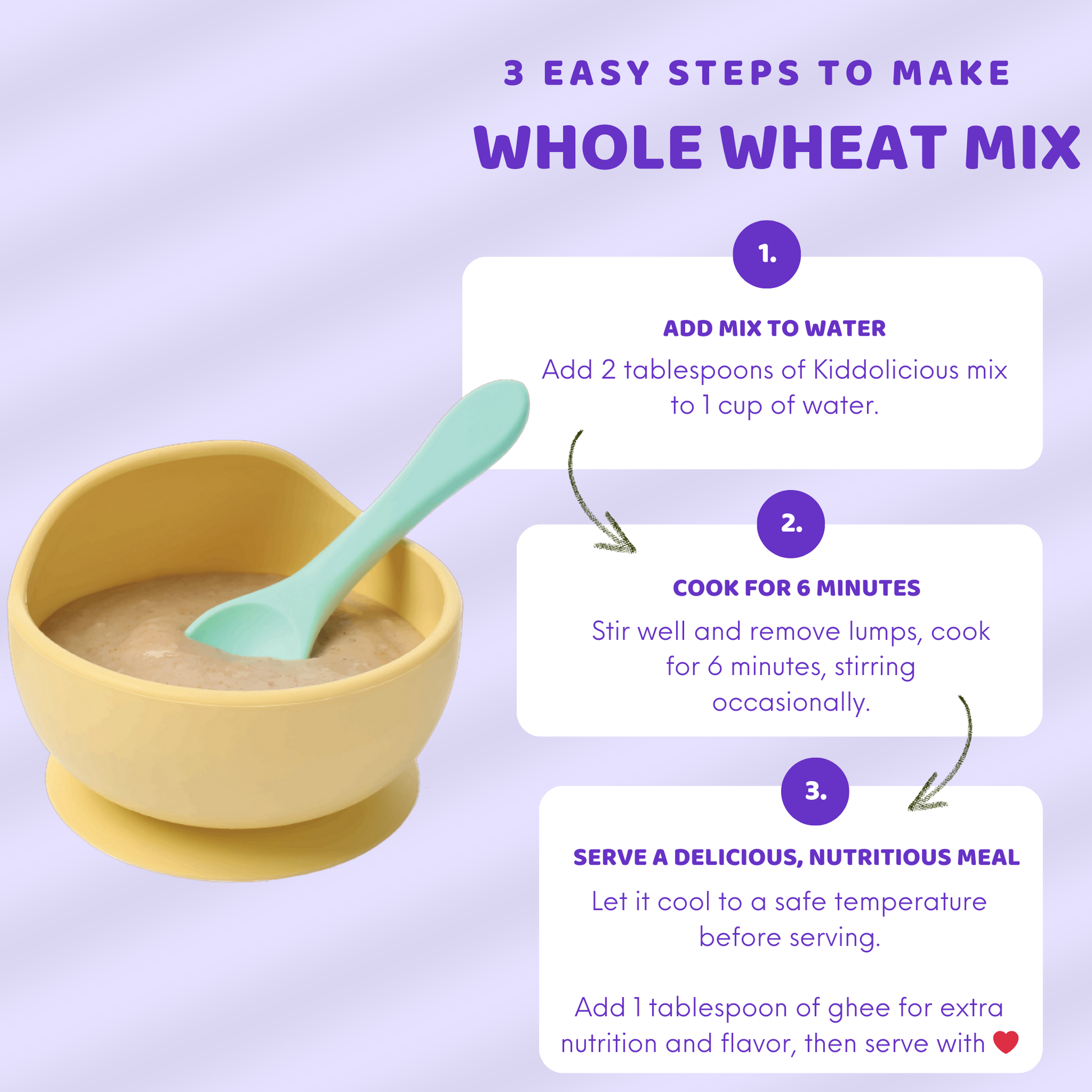 Our Whole Wheat Mix is a hearty blend packed with fiber, vitamins, and minerals that provide sustained energy for your baby’s daily adventures. This mix is easy to prepare, giving busy moms a wholesome mealtime solution that supports growth and development.