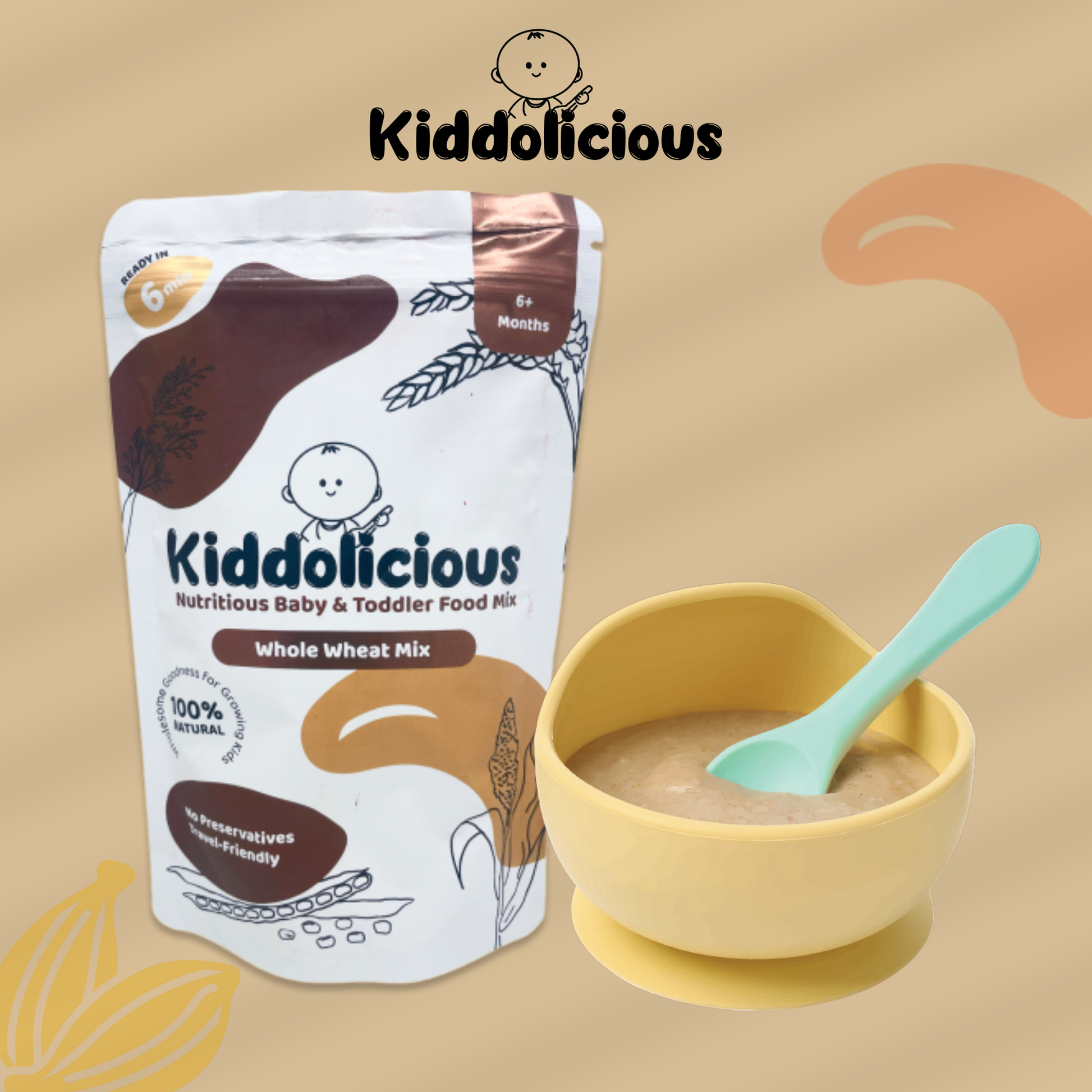 Nurture your baby with Kiddolicious Whole Wheat Mix—a natural, nutritious, and easy-to-prepare choice that ensures your little one grows happy, healthy, and strong. Order now to make mealtime simple and nourishing!