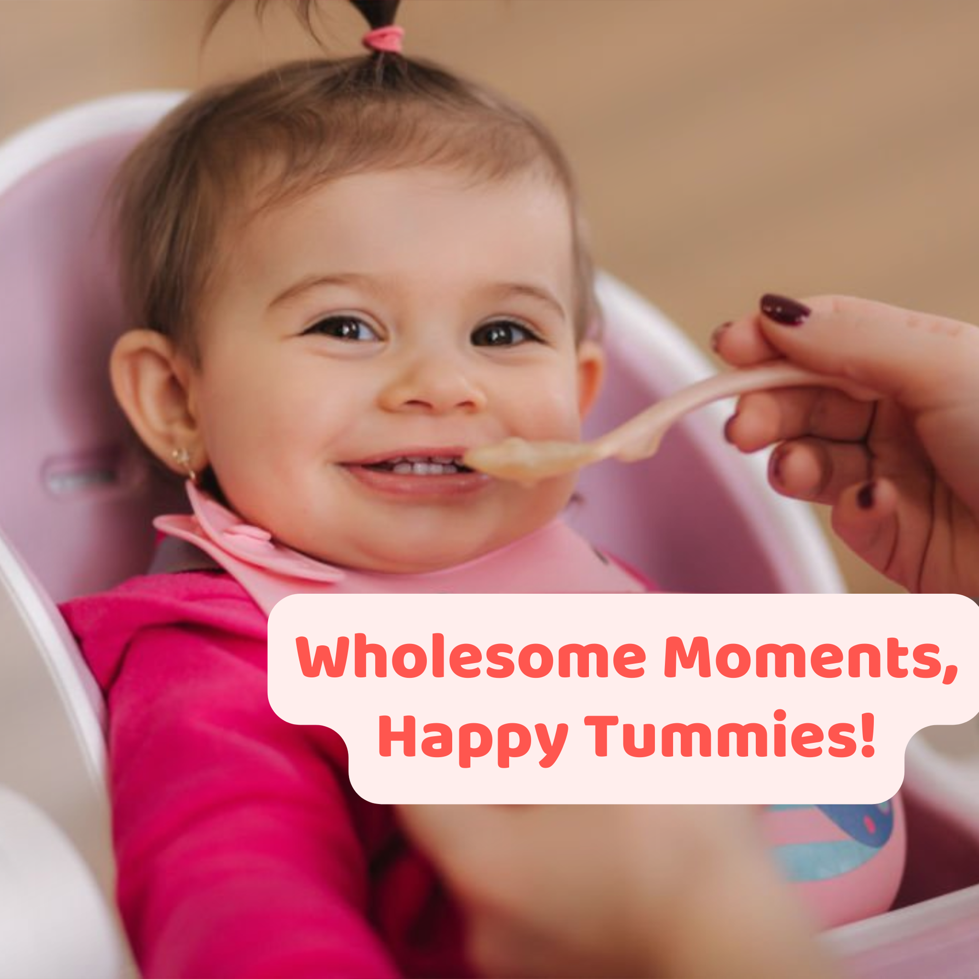 We use nutrient-rich, traditional ingredients like Whole Wheat, Whole Green Gram, Groundnuts, Cashews, Almonds, Fried Gram Dal, Red Rice, Sabudana, and Cardamom to offer wholesome, balanced meals for little ones.